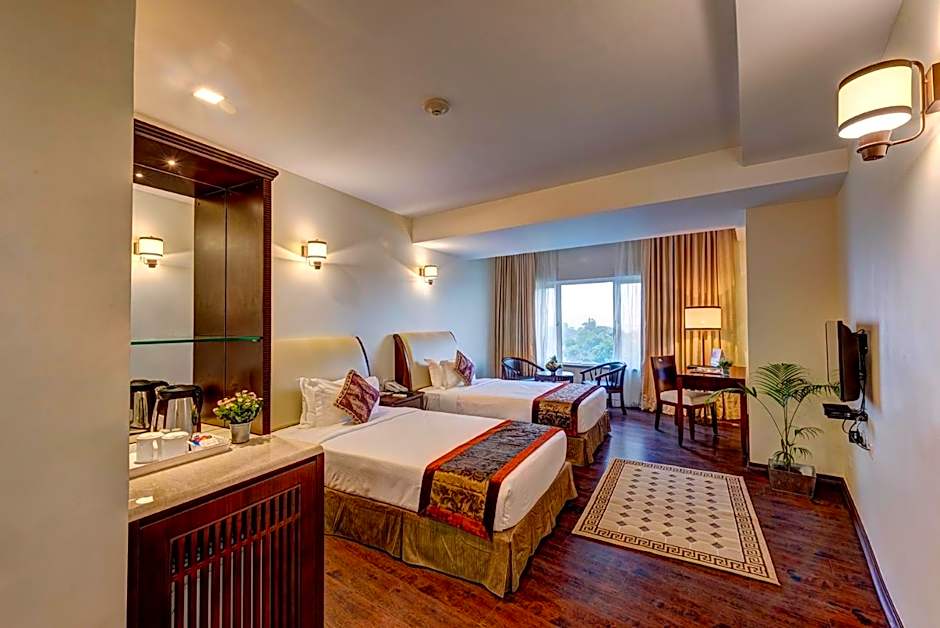 At The Fern Residency Galaxy Mall, you'll find a variety of comfortable and tastefully decorated rooms to choose from. One popular option is the Standard Double or Twin Room - perfect for single occupancy. With a spacious room size of 301 sqft, you'll have plenty of space to relax and unwind. The room features two twin beds and one double bed, accommodating up to two adults and one child. Plus, with a strict no-smoking policy, you can breathe easy knowing you'll have a fresh and clean atmosphere during your stay.